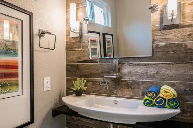 Reclaimed Wood Wall Adds Warm Focal Point to Bathroom Space